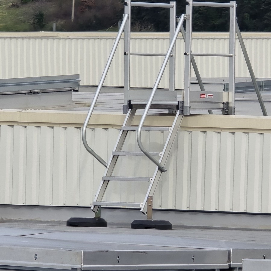 Livré en kit pré-monté, la manutention de la passerelle jusqu'à la toiture est facilitée.